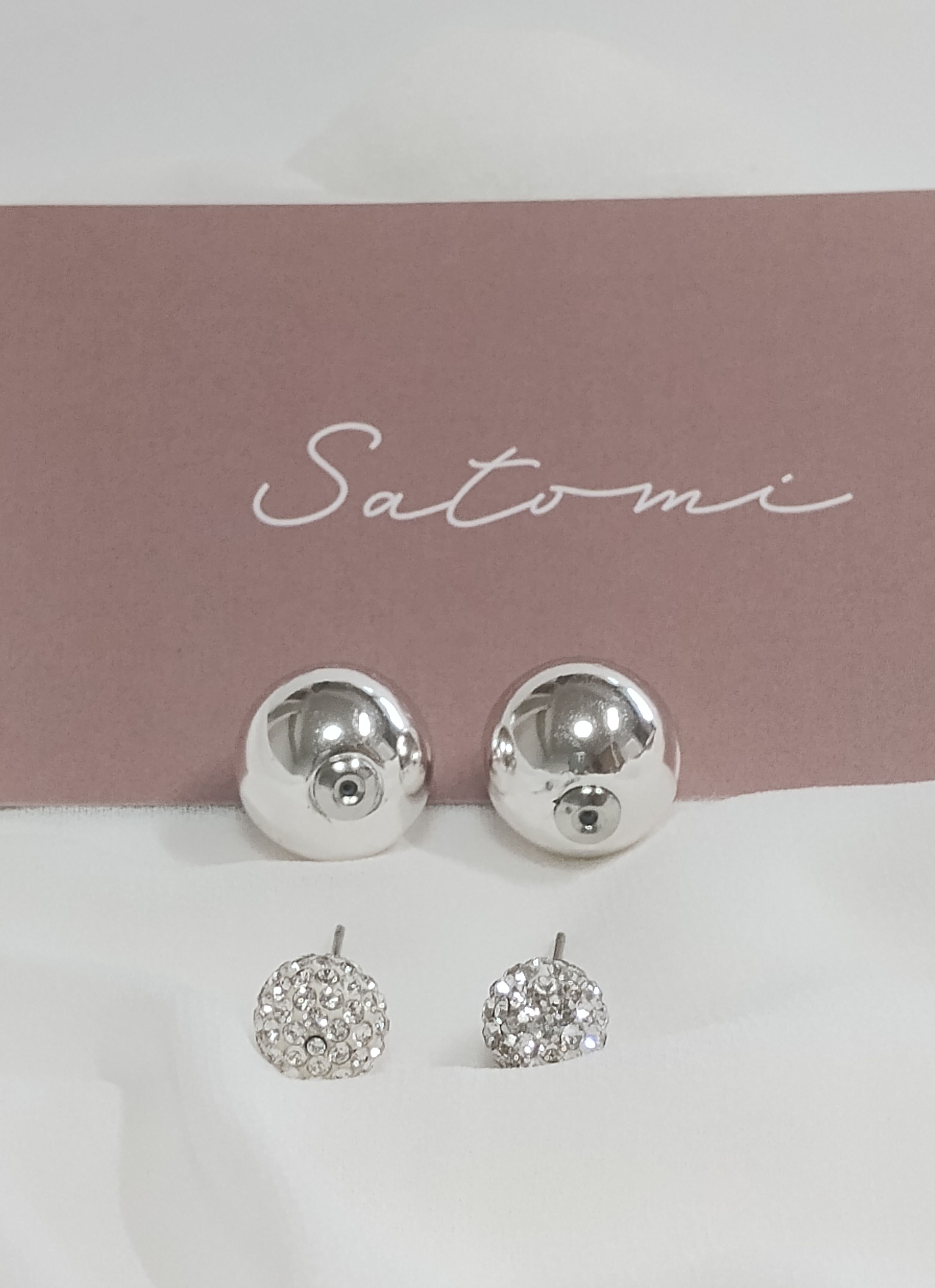 キラキラボールを前に着けていただくと後ろのシルバーキャッチが見え、シルバーキャッチを前に着けていただくとスタイリッシュな感じになります。