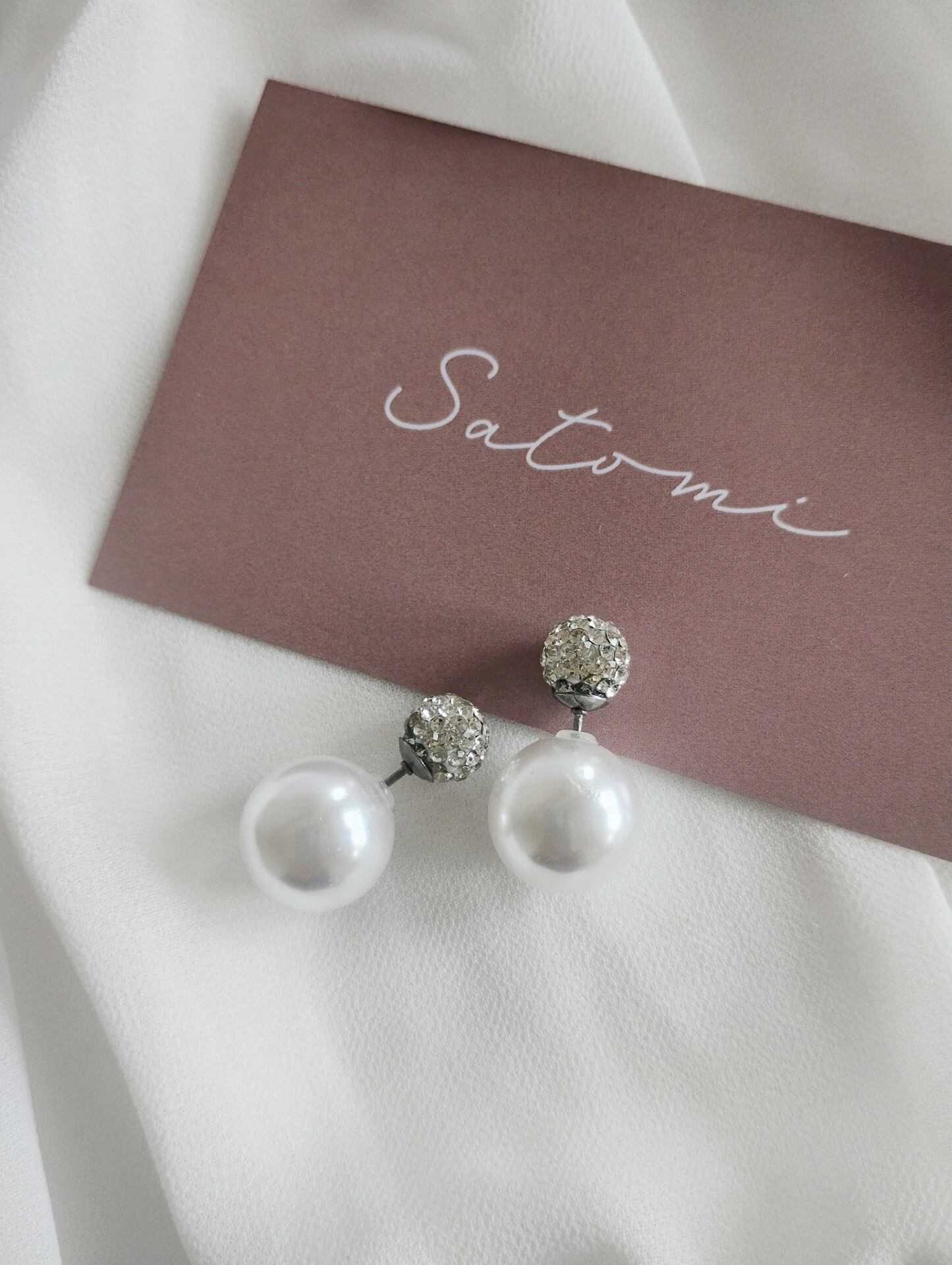 キラキラボールと14mmの大玉パールキャッチが前後チェンジできる2wayタイプの華やかでスタイリッシュなピアスです。