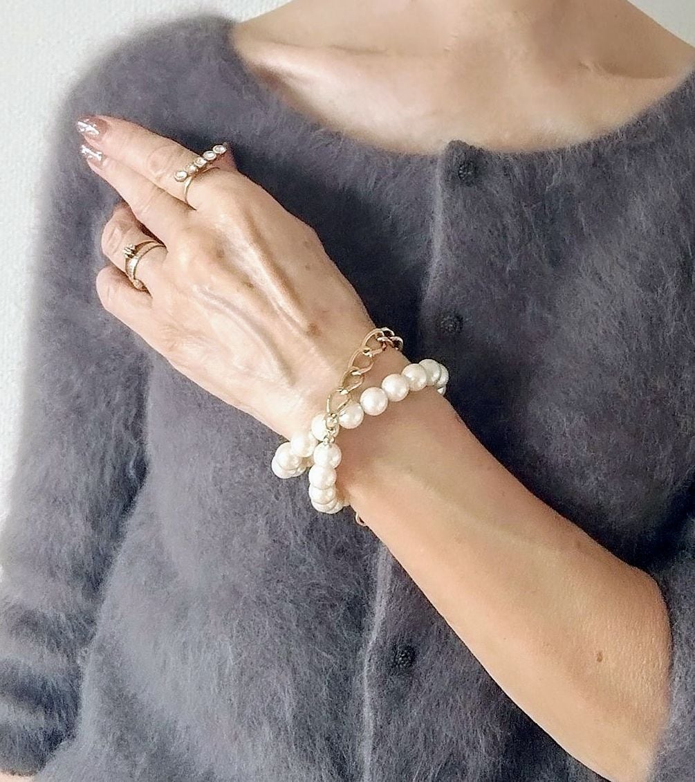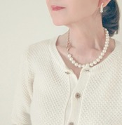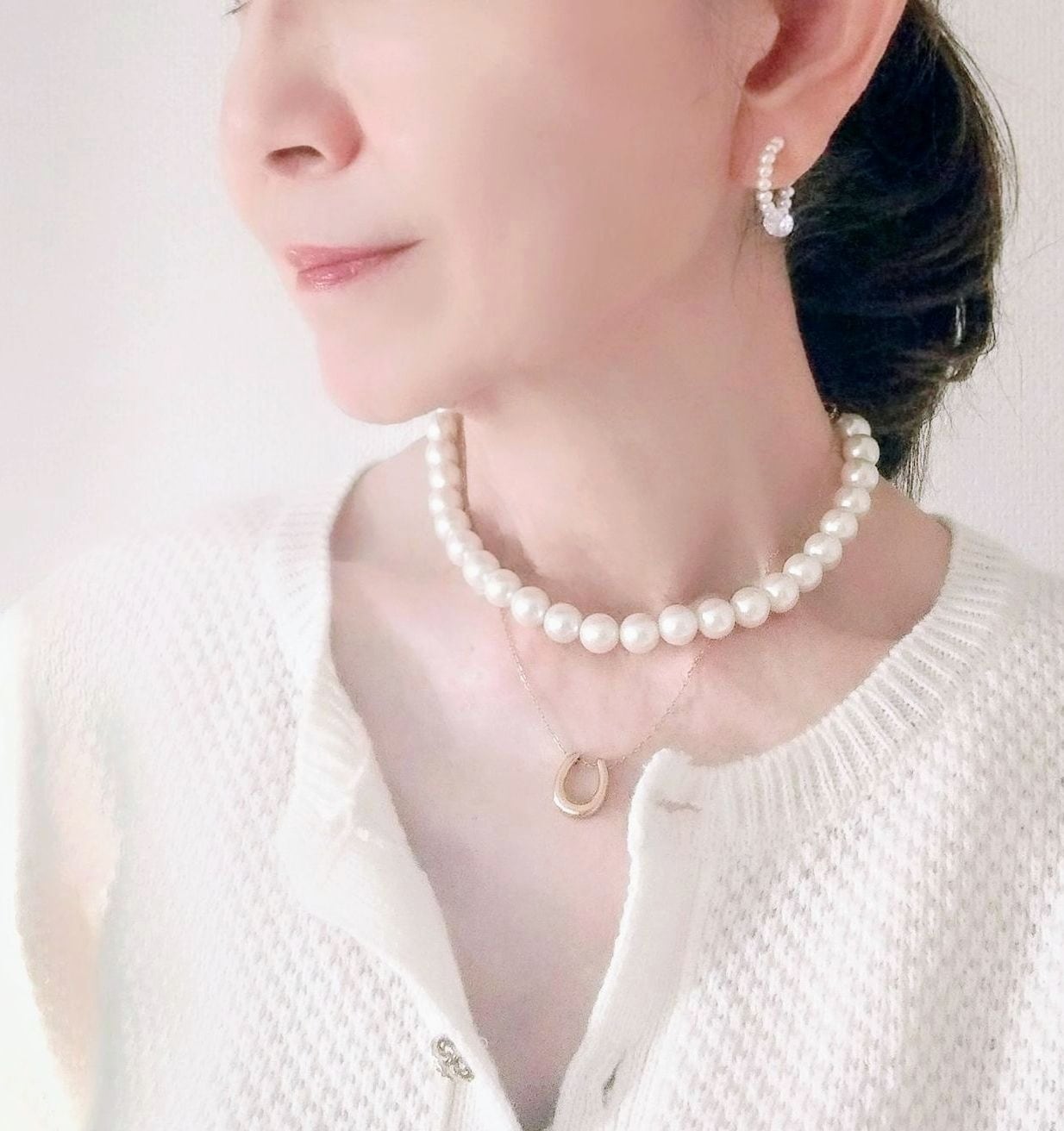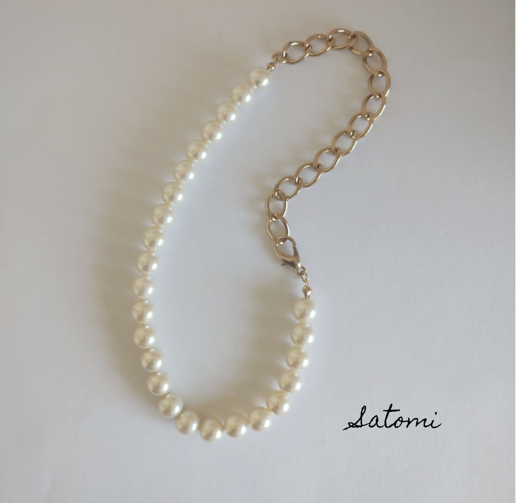 ボリュームのあるチェーンに1cm玉の大きなパールを繋げた存在感のあるネックレスです。