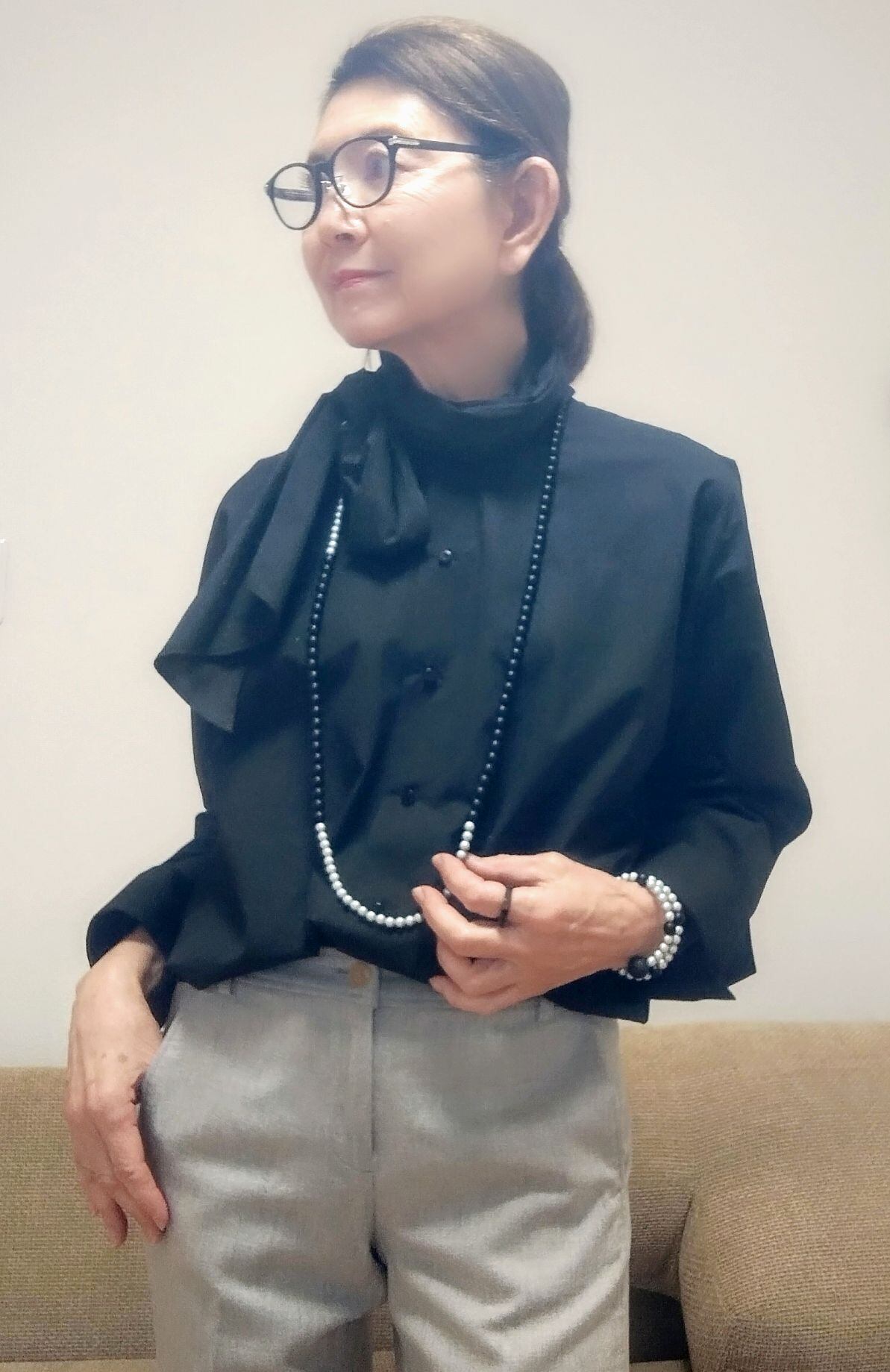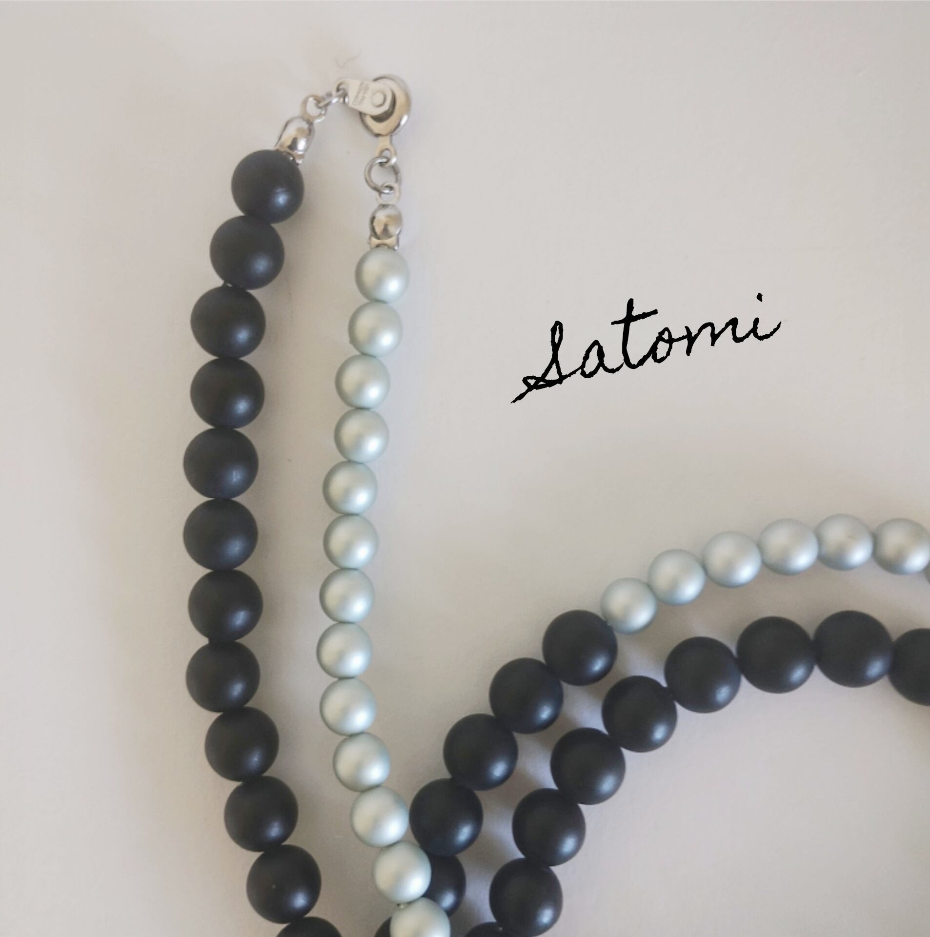 艷消しパールネックレス(グレイ&ブラック)