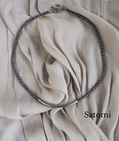 ビンテージブラックパールのデザインネックレス/金属アレルギー対応(サージカルステンレスL316使用)